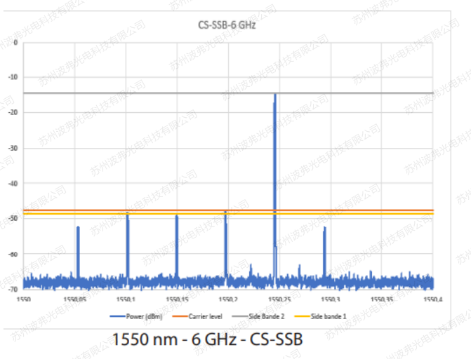 3. 強度調制器所產生的1階邊帶強度高于相位調制器(見下表),因為相位調制器有部分強度分布在其他階邊帶上