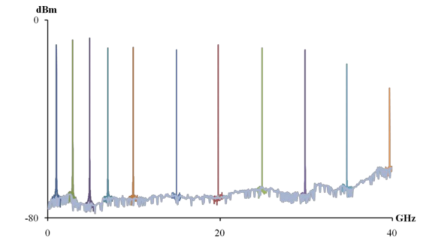 通過光接收器和射頻頻譜分析儀測(cè)量的樣本外差信號(hào)。